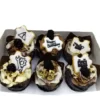 3 vaniliniai keksiukai su balto šokolado ir maskarponės kremu, 3 šokoladiniai keksiukai su balto šokolado kremu. Visi jie – viename rinkinyje! Purūs, tirpsta burnoje, gaivūs.